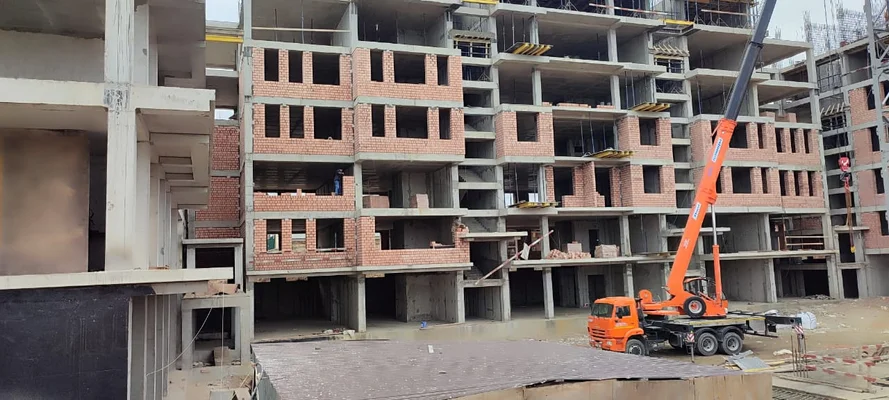 Комплекс возводится быстрыми темпами, фасад одного корпуса почти завершён. Дом будет сдан в эксплуатацию в 4 квартале 2027 года. Ход строительства можно наблюдать через онлайн-камеры.