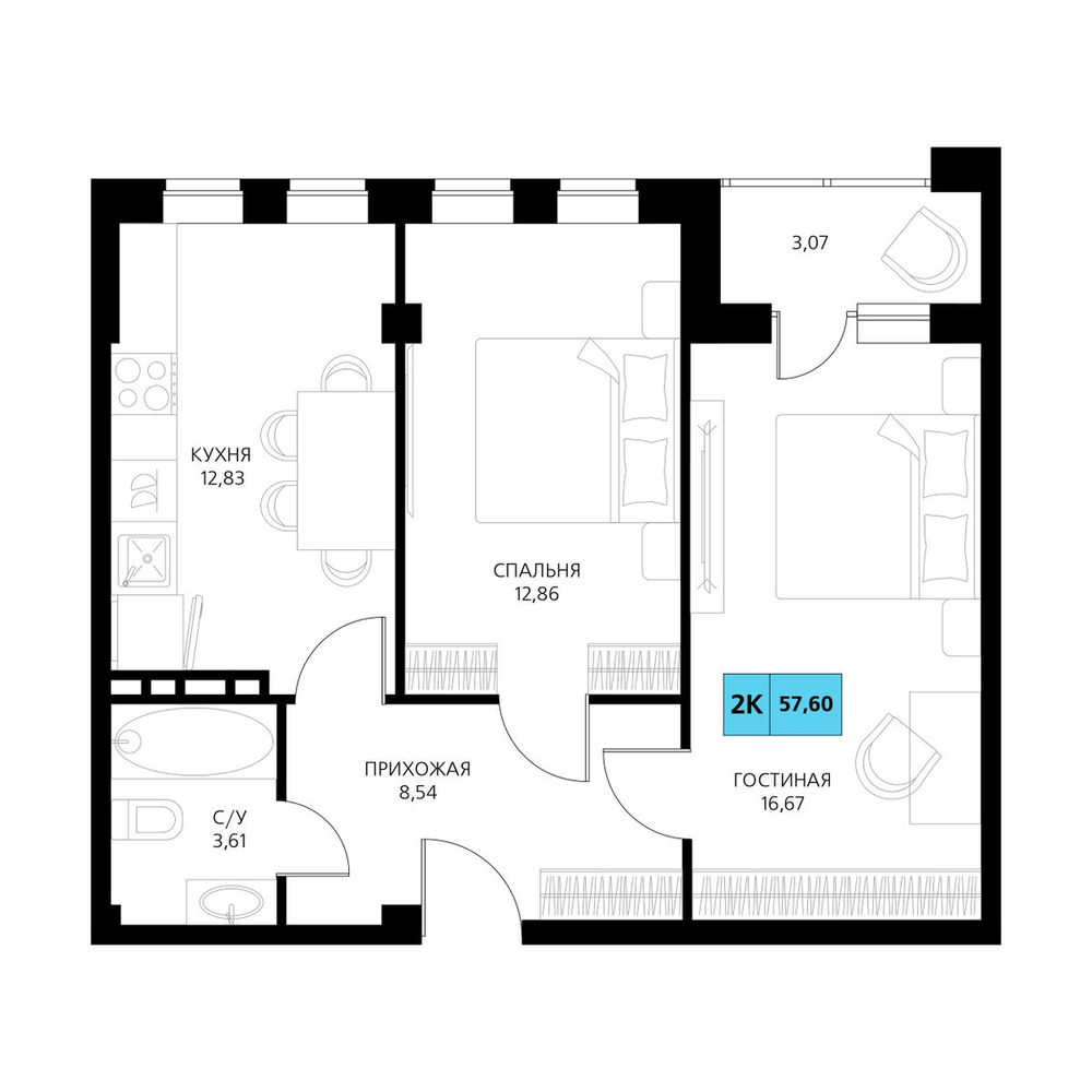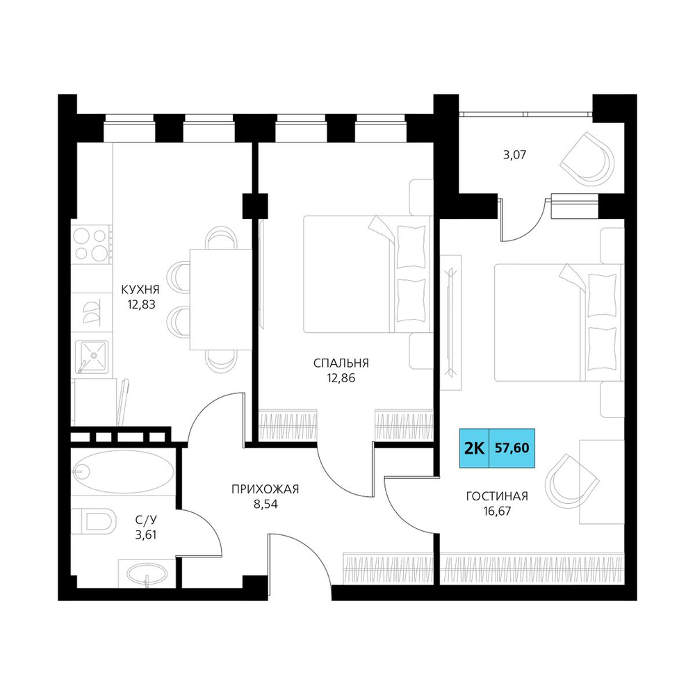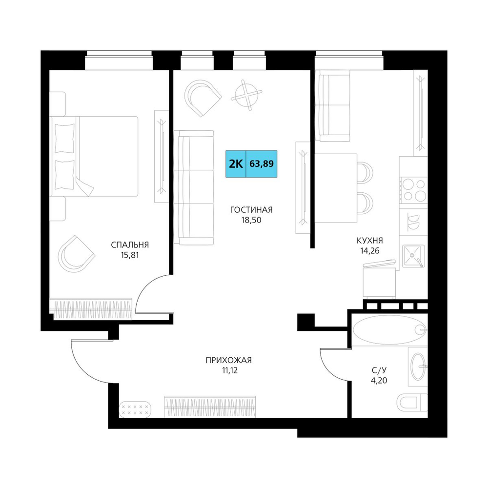 2-комнатная 63.89 м